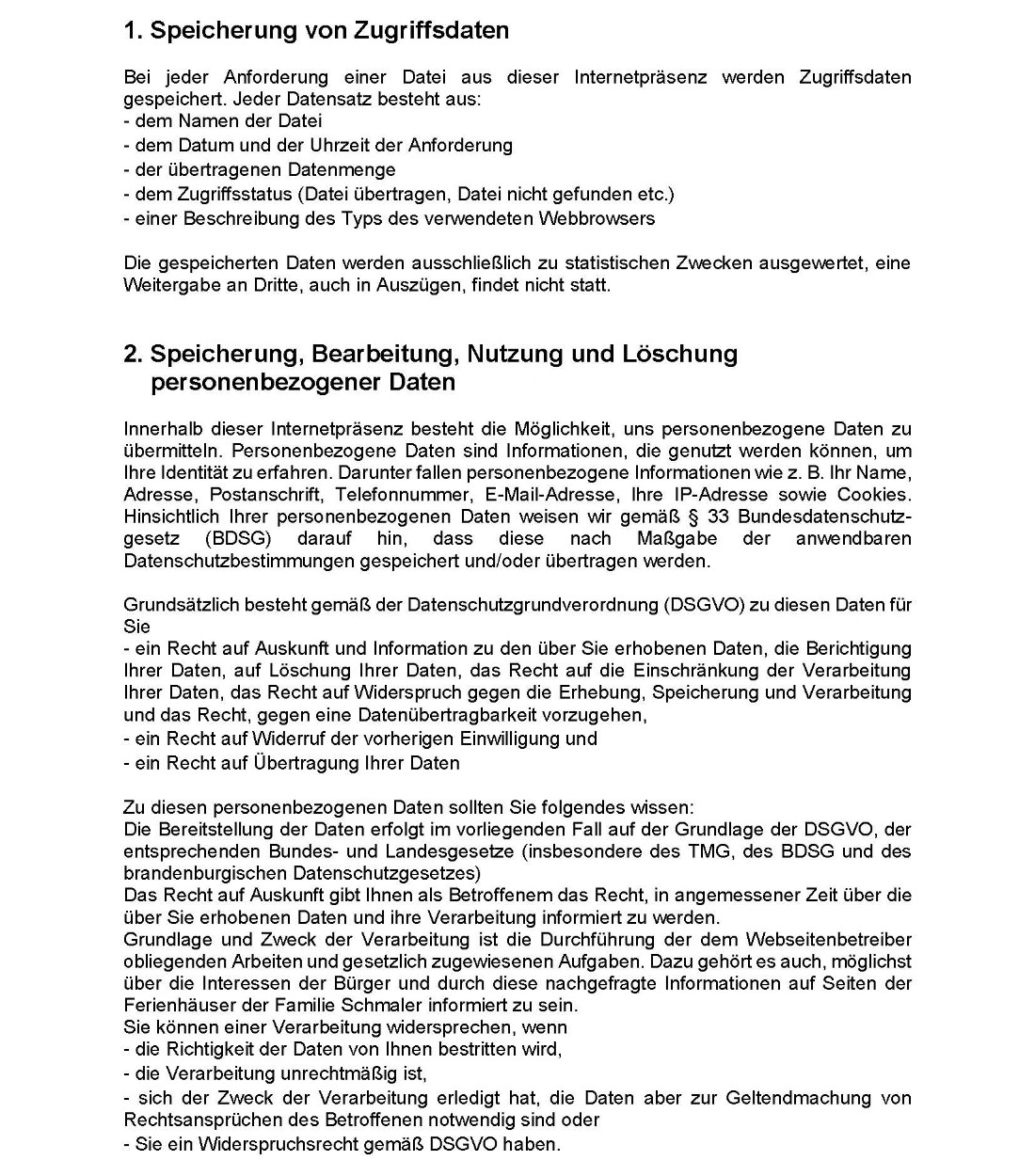 Datenschutzerklärung - Ferienhäuser Schmaler